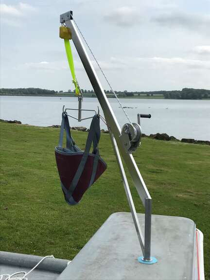 The Hansa C-Crane hoist is a stainless steel manual lift using hand winch and failsafe fall arrester, allowing for ease of operation.
